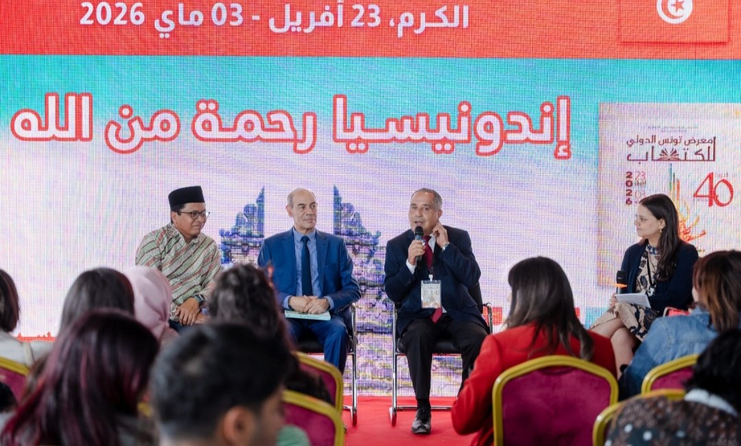TUNIS (trijaya.co) – Indonesia menjadi Tamu Kehormatan Pameran Buku Internasional Tunisia ke-40 di Elkram, Tunis, Tunisia, 23 April-03 Mei 2026. Kedutaan Besar Republik Indonesia untuk Tunisia meluncurkan dan menggelar diskusi buku INDONESIA RAHMAT TUHAN yang ditulis Muhammad Mathri Shumayda, wartawan senior asal Tunisia (25/4).